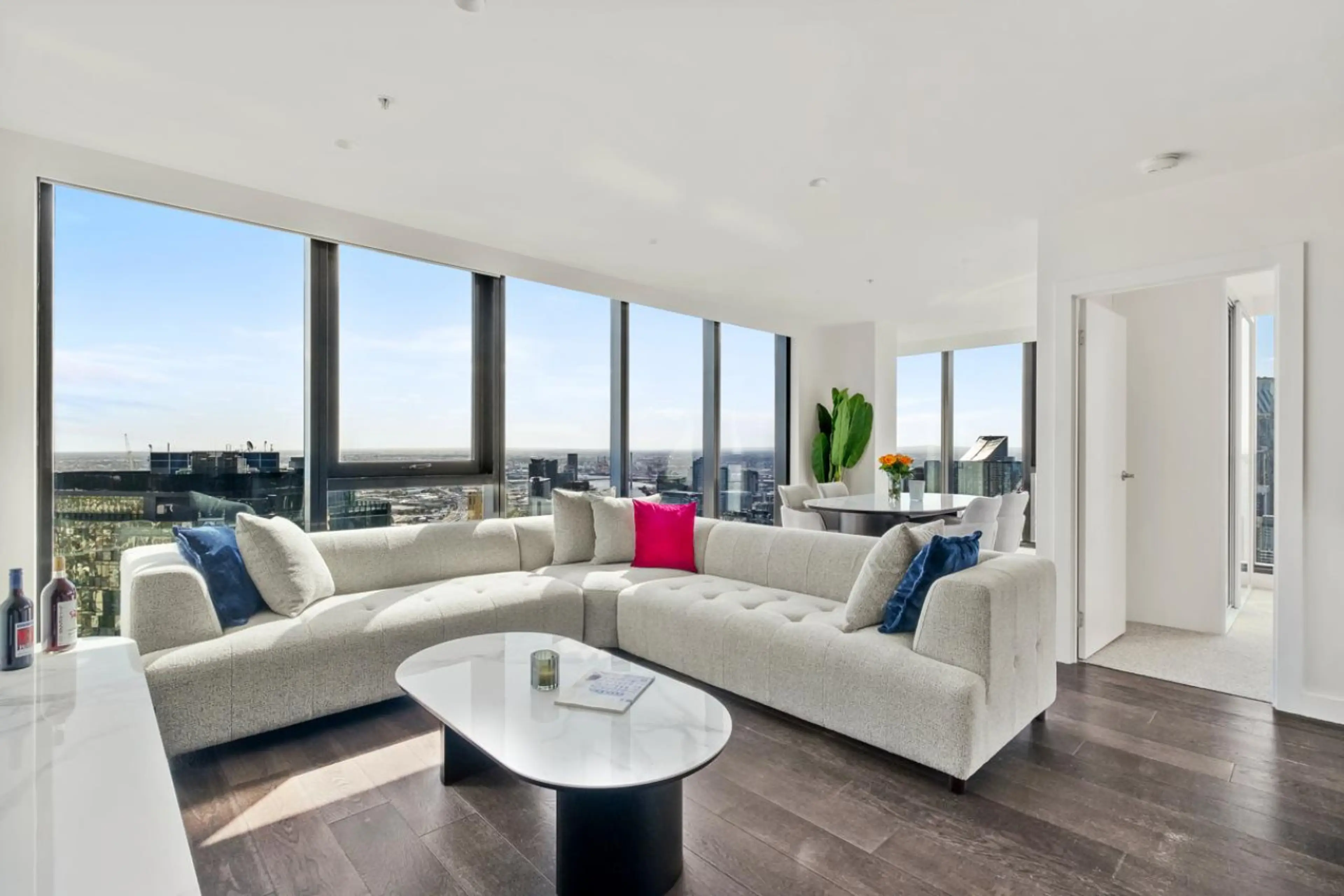 Perched high on the 50th floor of the prestigious Platinum Tower, this stunning 3 bedroom, 2 bathroom apartment offers sky high living with breathtaking views of Port Phillip Bay, the Yarra River and Melbourne’s skyline. Floor to ceiling glass fills the spacious open plan living and dining area with...